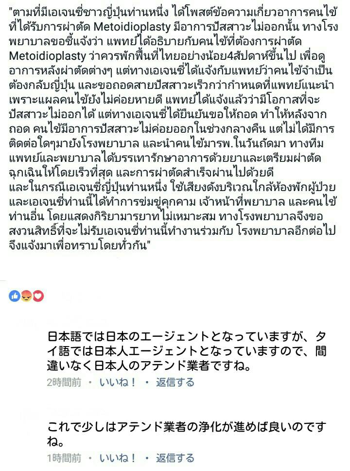 命がけの手術なのに通訳に来ない、来てもタイ語のレベルが低すぎて伝わらない。